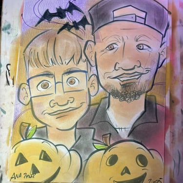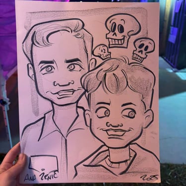 Andrew is based in the Chicago suburbs and he graduated from School of the Art Institute of Chicago. He is actively involved in the local art and queer community. He will talk your ear off about anime and has great suggestions for coffee and food spots. When he is not drawing caricatures, he loves to make handmade cards
