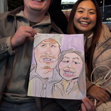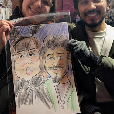 Andrew is based in the Chicago suburbs and he graduated from School of the Art Institute of Chicago. He is actively involved in the local art and queer community. He will talk your ear off about anime and has great suggestions for coffee and food spots. When he is not drawing caricatures, he loves to make handmade cards