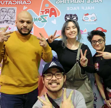 Started in 2025 by a couple of Chicago caricature artists who know many other talented artists; we focus on retail set ups in festivals and providing art services for various events. Birthdays, Bar Mitzvahs, Trade shows, Conventions, Corporate Parties, Divorce parties, you name it-- we've done them all.